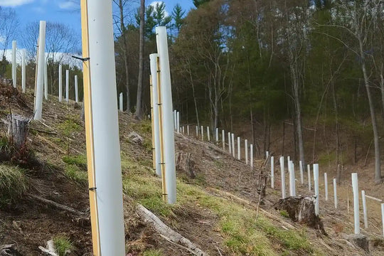 Tree Tubes are a staple of getting a great start to a tree planting. As their names indicate, Tree Protectors / Tree Shelters / Tree Growing Tubes are designed to protect trees from deer browse and rub, rodents, wind, drought, winter crack, sun scald, mowers, weed eaters, herbicides, and even people.